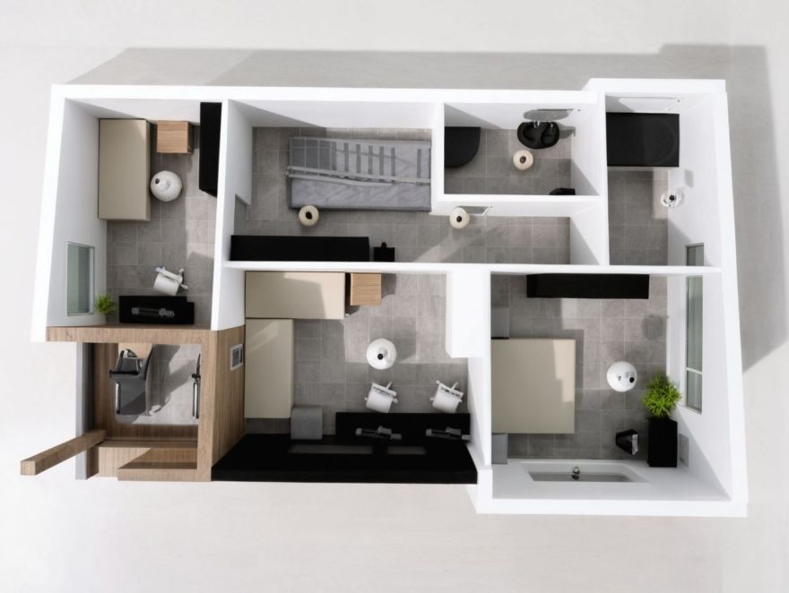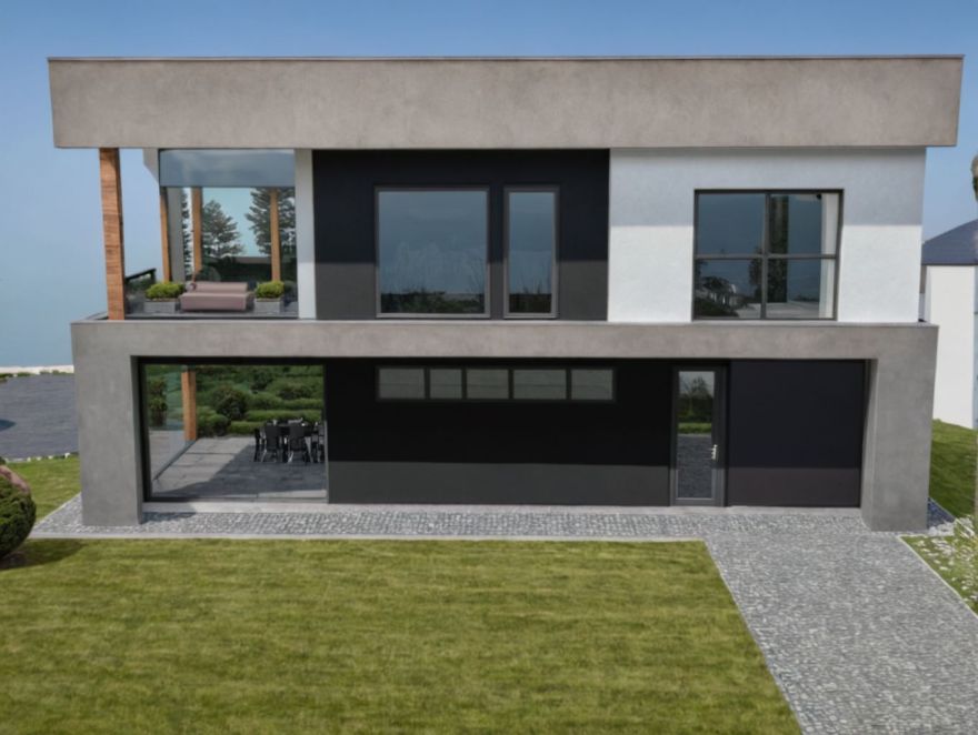 Двуетажна жилищна сграда в гр. Долна Митрополия с три спални, дневна с трапезария и обединена кухня, три санитарни възела, килер и склад за градинска техника.